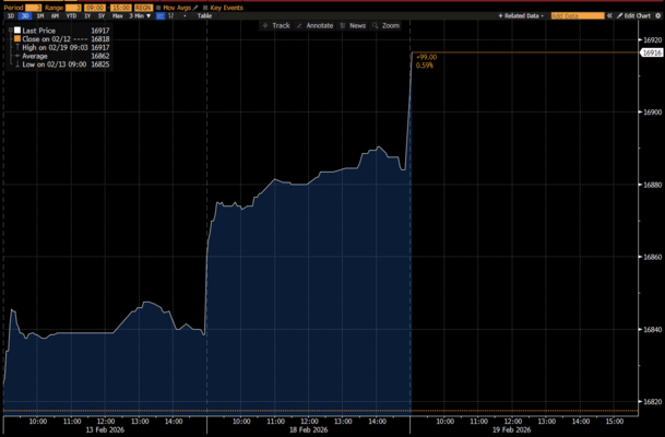 Rupiah menyusut 0,2% dan dibanderol Rp16.917/US$ dalam pembukaan perdagangan spot hari ini, Kamis (19/2/2026), menandai hari kedua pelemahannya di pekan perdagangan yang pendek ini. Kemarin, rupiah ditutup terdepresiasi 0,27% dan menjadi yang terlemah di pasar Asia dalam penutupan perdagangan.