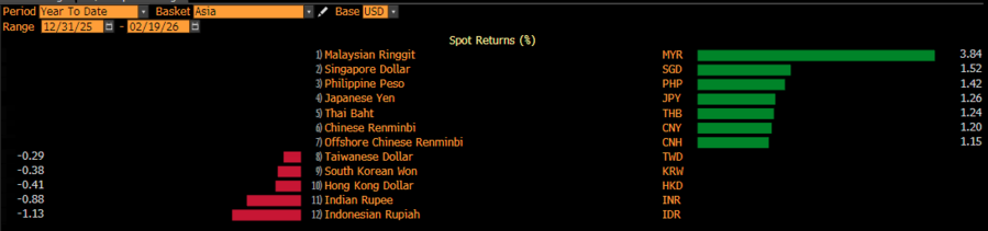Sejak awal tahun, rupiah sudah lebih lemah dibandingkan rupee India yang susut 0,88%, dolar Hong Kong yang turun 0,41%, dan won Korea Selatan yang tergerus 0,38%. Berbanding terbalik dengan ringgit Malaysia yang justru mencatatkan penguatan paling tinggi 3,84%, dolar Singapura menguat 1,52%, bahkan peso Filipina 1,42% dan yen Jepang 1,26%.