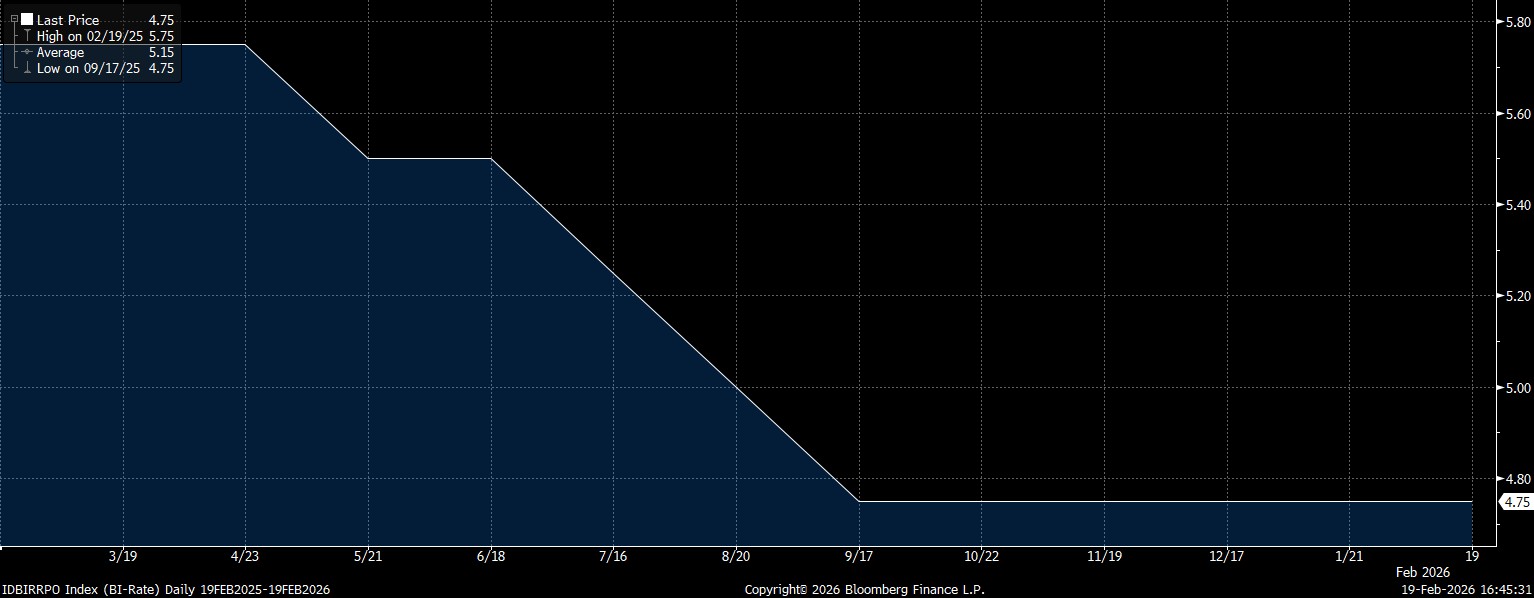Bertahannya BI Rate pada pertemuan Februari menjadi yang ke–lima setelah pemangkasan pada RDG September 2025.