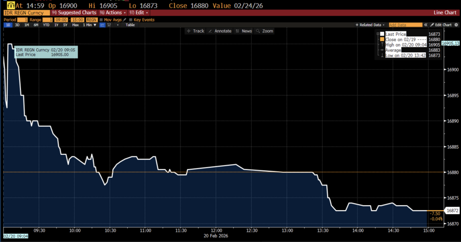 Meski begitu, rupiah tercatat telah susut sekitar 0,2% sepanjang pekan ini setelah para pembuat kebijakan mengindikasikan akan mengevaluasi ruang untuk pelonggaran moneter lebih lanjut. Terlebih bulan ini dan bulan depan pasar domestik mengadapi momentum Ramadan dan Idul Fitri yang umumnya mengerek inflasi. Sehingga ruang pelonggaran menjadi terbatas pada kuartal I-2026.