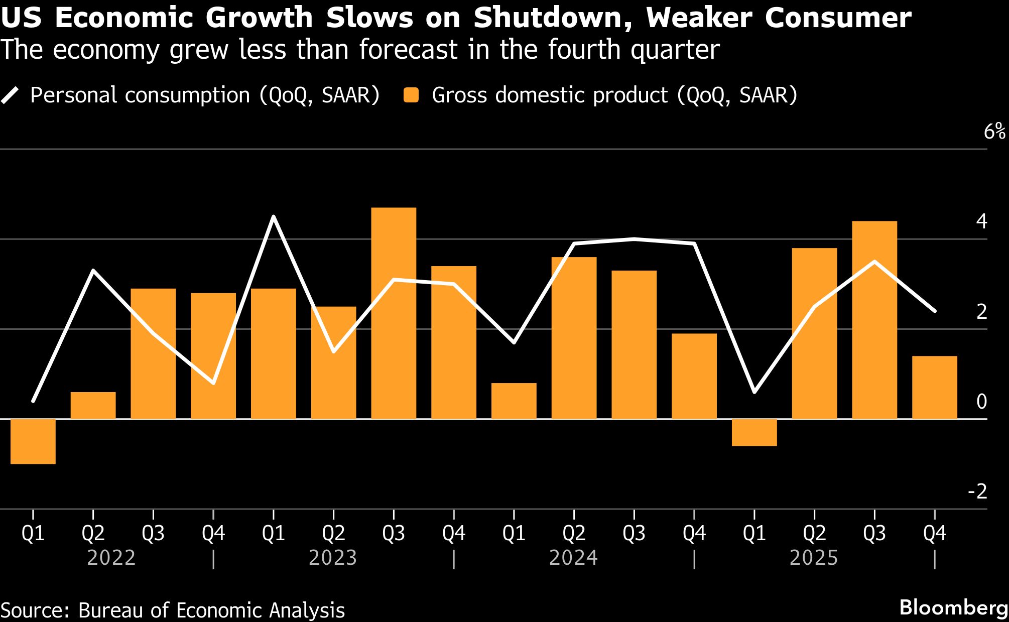 Bloomberg, Ekonomi Amerika Serikat (AS) tumbuh di bawah ekspektasi pada akhir tahun lalu, terbebani oleh penutupan pemerintahan (government shutdown) yang memecahkan rekor durasi terlama, serta melambatnya belanja konsumen dan sektor perdagangan.