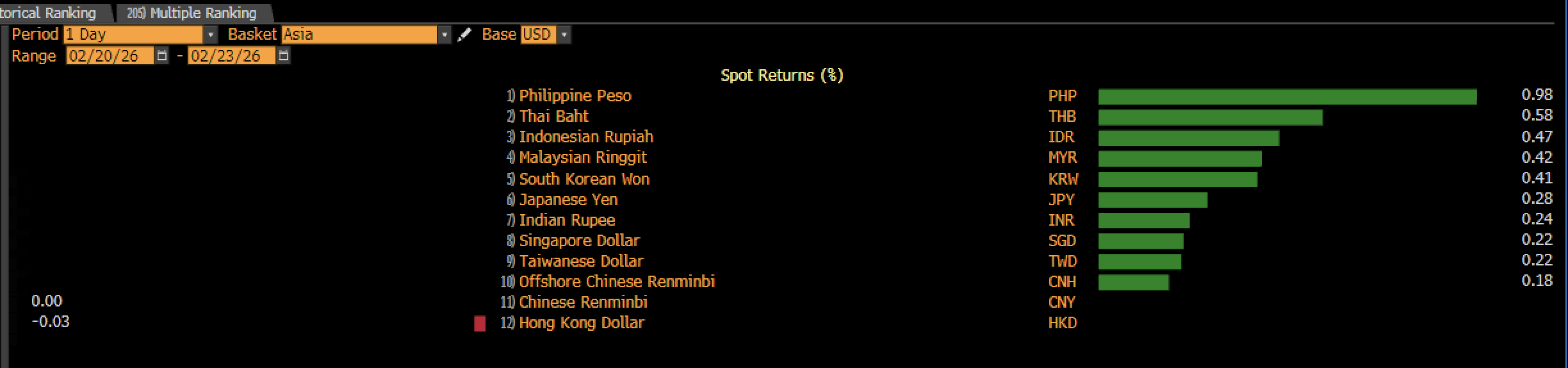 Ketidakpastian kebijakan perdagangan ini kemudian membatasi laju penguatan bagi dolar AS dan mengerek sejumlah mata uang Asia ke zona hijau. Penguatan mata uang Asia dipimpin oleh peso Filipina yang menguat 0,98%, disusul baht Thailand 0,58%, lalu Indonesia di posisi ketiga dengan penguatan 0,47%. Berada di posisi ketiga terbaik di Benua Kuning, rupiah masuk 'podium'.