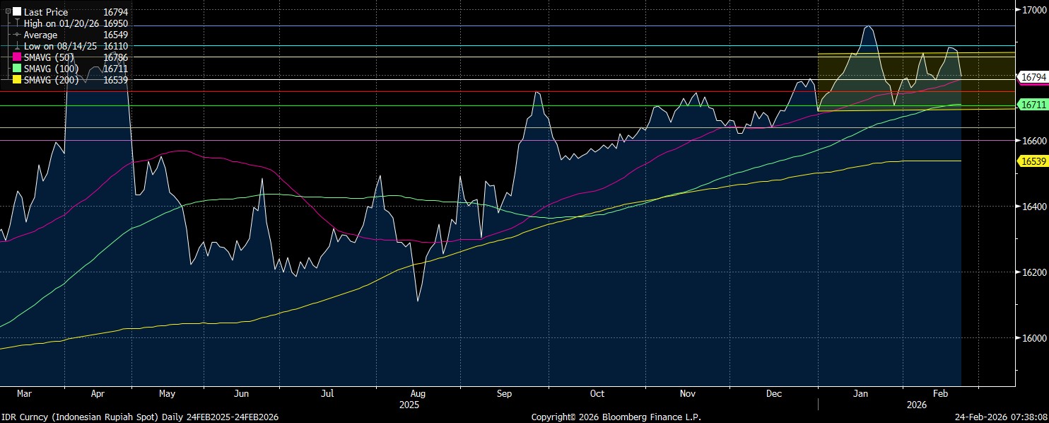 Apabila kembali break kedua support tersebut, maka rupiah bisa saja melemah lebih lanjut menuju level Rp16.880/US$ sebagai support paling kuat dalam time frame daily.
