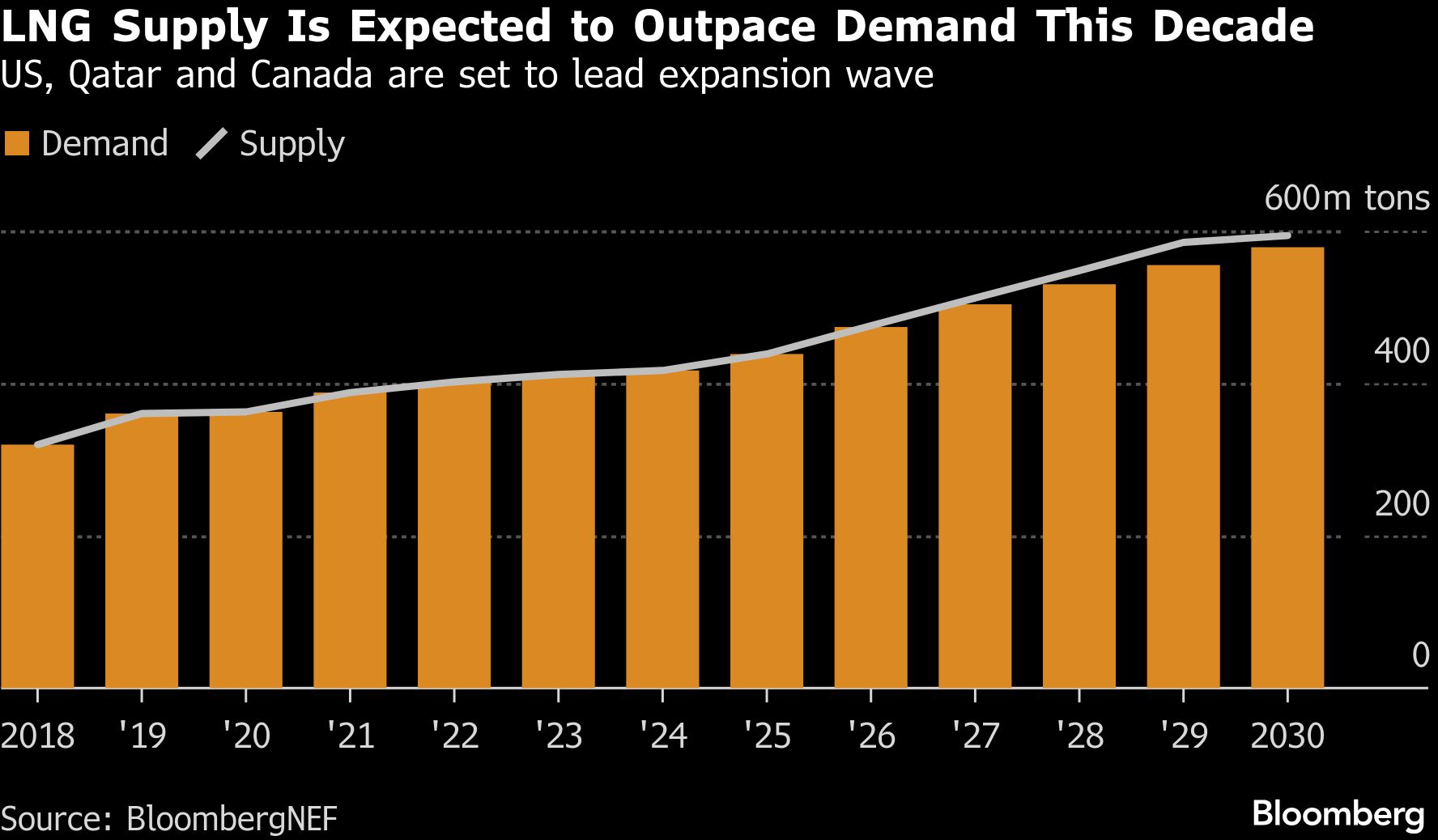 International Energy Agency dan BloombergNEF memprediksi bahwa pabrik-pabrik LNG baru di Amerika Utara dan Timur Tengah dapat membuat pasar mengalami kelebihan pasokan mulai tahun ini.