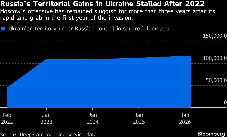 Menurut data dari DeepState, layanan pemetaan konflik yang bekerja sama dengan Kementerian Pertahanan Ukraina, perolehan wilayah Rusia kurang dari 1% dari luas daratan Ukraina dalam tiga tahun terakhir.