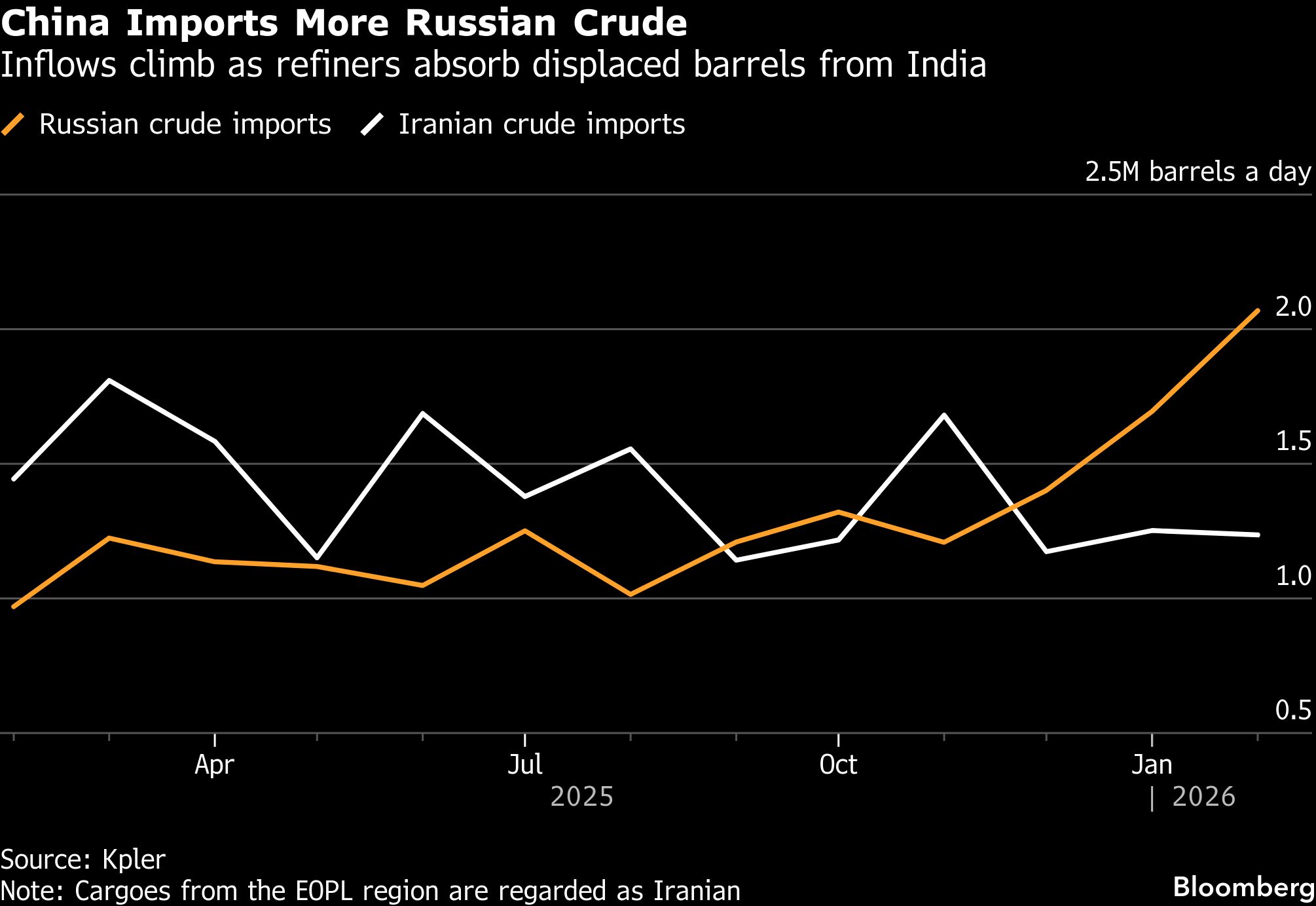 Sejauh ini, tampaknya Iran yang terkena dampaknya karena Rusia makin menguasai pasar. Pengiriman minyak Rusia ke pelabuhan China meningkat menjadi 2,09 juta barel per hari dalam 18 hari pertama Februari, menurut data pelacakan kapal yang dikumpulkan oleh Bloomberg.