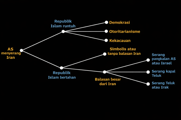 "Kami menilai respons Iran akan terus meningkat. Meski tak mampu menandingi superioritas militer AS, Iran dapat menimbulkan biaya signifikan dan berupaya menyeret AS ke dalam konflik berkepanjangan di kawasan," sebut Laporan Bloomberg Economics (1/3/2026).