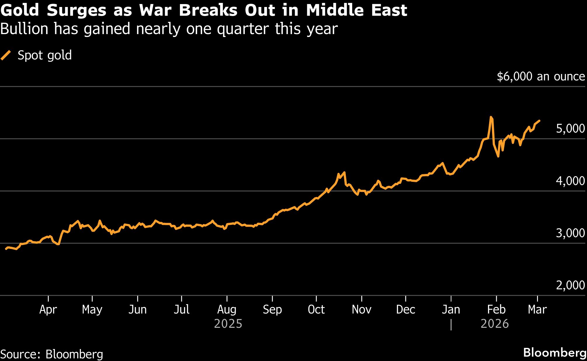 Pada Senin (2/3/2026) pukul 07:23 WIB, harga emas dunia di pasar spot tercatat US$ 5.361,9/troy ons. Melonjak 1,59% dibandingkan penutupan perdagangan akhir pekan lalu dan menjadi yang tertinggi sejak 29 Januari atau sekira sebulan terakhir.