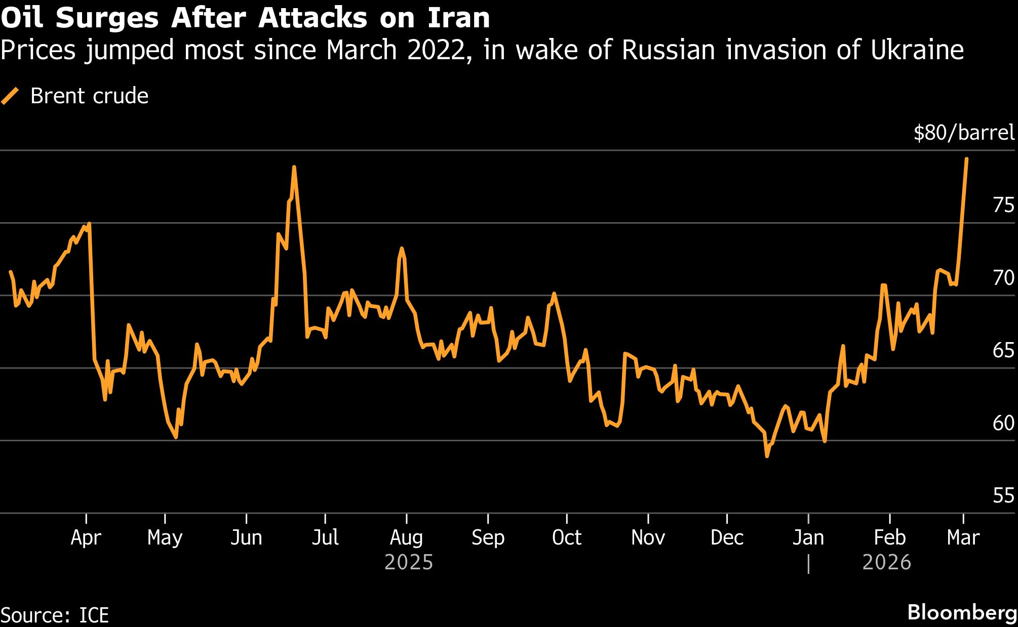 Pada Senin (2/3/2026), harga WTI melonjak hingga 8,07% ke level sekitar US$72,43/barel. Sementara itu, minyak Brent untuk pengiriman Mei melonjak 12% menjadi US$81,37 per barel pada pukul 7.01 pagi di Singapura.
