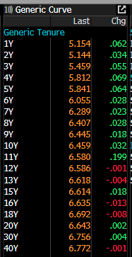 Dari pasar surat utang, investor mulai menjual aset berdenominasi rupiah dengan terjadinya kenaikan yield pada hampir semua tenor. Tenor 1Y dan 2Y masing-masing naik 6,2 basis poin (bps) dan 4 bps menjadi 5,15%. Tenor 3Y juga mengalami kenaikan yield 5,4 bps menjadi 5,45%, dan tenor 5Y naik 5,9 bps menjadi 5,83%. Kemudian, tenor 10Y naik 3,2 bps menjadi 6,45%.