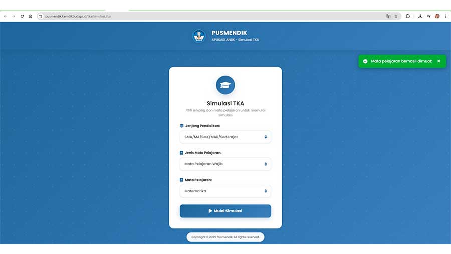 Platform tersebut menjadi satu-satunya jalur resmi untuk mengikuti simulasi TKA tahun ini.