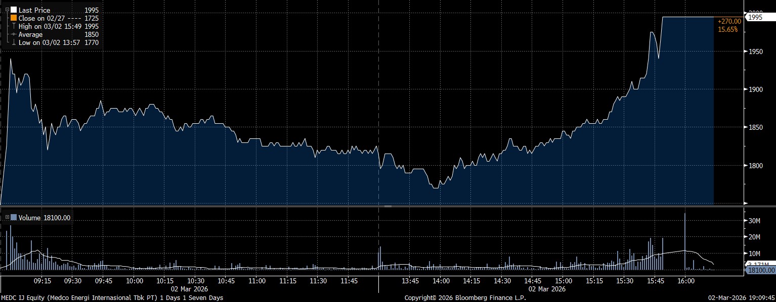 Adapun investor asing net sell yang deras terhadap saham PT Medco Energi Internasional Tbk (MEDC) mencapai Rp528,09 miliar. Berseberangan jauh terhadap manuver jual, saham MEDC justru berhasil menguat 15,65% hingga berada di posisi Rp1.995/saham.