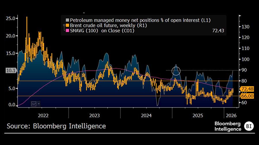 Dukungan sementara dari perkembangan di Venezuela dan perang di Ukraina menopang sentimen, tetapi kenaikan berkelanjutan akan membutuhkan gangguan pasokan yang signifikan bukan premi risiko yang didorong oleh berita utama.