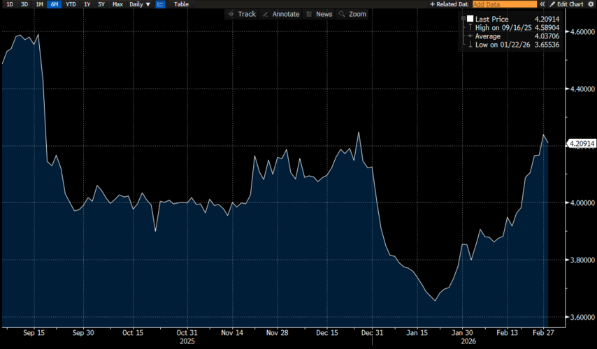 Melansir data Bloomberg, IndONIA sepanjang Februari telah naik 15 basis poin (bps) dari 4,08% menjadi 4,23%. Posisi terakhir awal Maret, IndONIA masih berada di level 4,2%.
