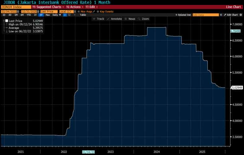 Begitu juga dengan tingkat bunga Jakarta InterBank Offered Rate (JIBOR) saat ini masih berada di 5,02%. Dengan BI Rate tinggi lebih lama, bank berpotensi menaikkan suku bunga deposito untuk menjaga daya tarik dana pihak ketiga, yang akhirnya juga mengerek bunga kredit naik lebih mahal.