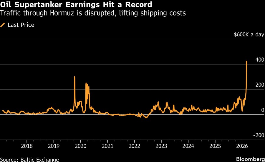 Pendapatan di rute acuan industri ini mencapai US$424.000 per hari, menurut data dari Baltic Exchange di London. Biaya tersebut berlaku untuk kapal tanker terbesar yang mampu mengangkut dua juta barel minyak mentah. Biaya pemesanan kapal tanker dari Pantai Teluk AS ke China juga mencapai rekor lebih dari US$21 juta untuk seluruh perjalanan.