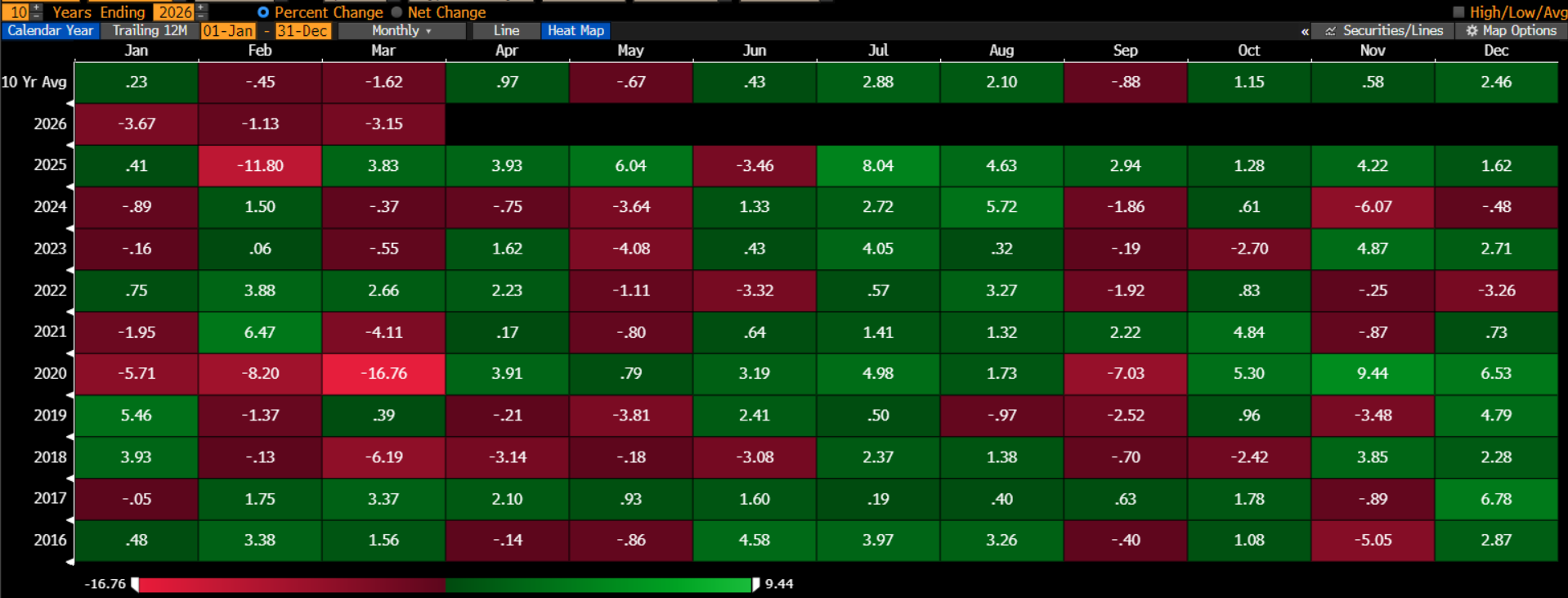 Bloomberg Technoz, Jakarta - Indeks Harga Saham Gabungan (IHSG) memulai hari perdagangan Maret ini dengan pesimisme. Hal ini sejalan dengan data historis dalam 10 tahun, IHSG tersekap di zona merah. Jika dirata–ratakan, IHSG tercatat turun 1,62% selama Maret.