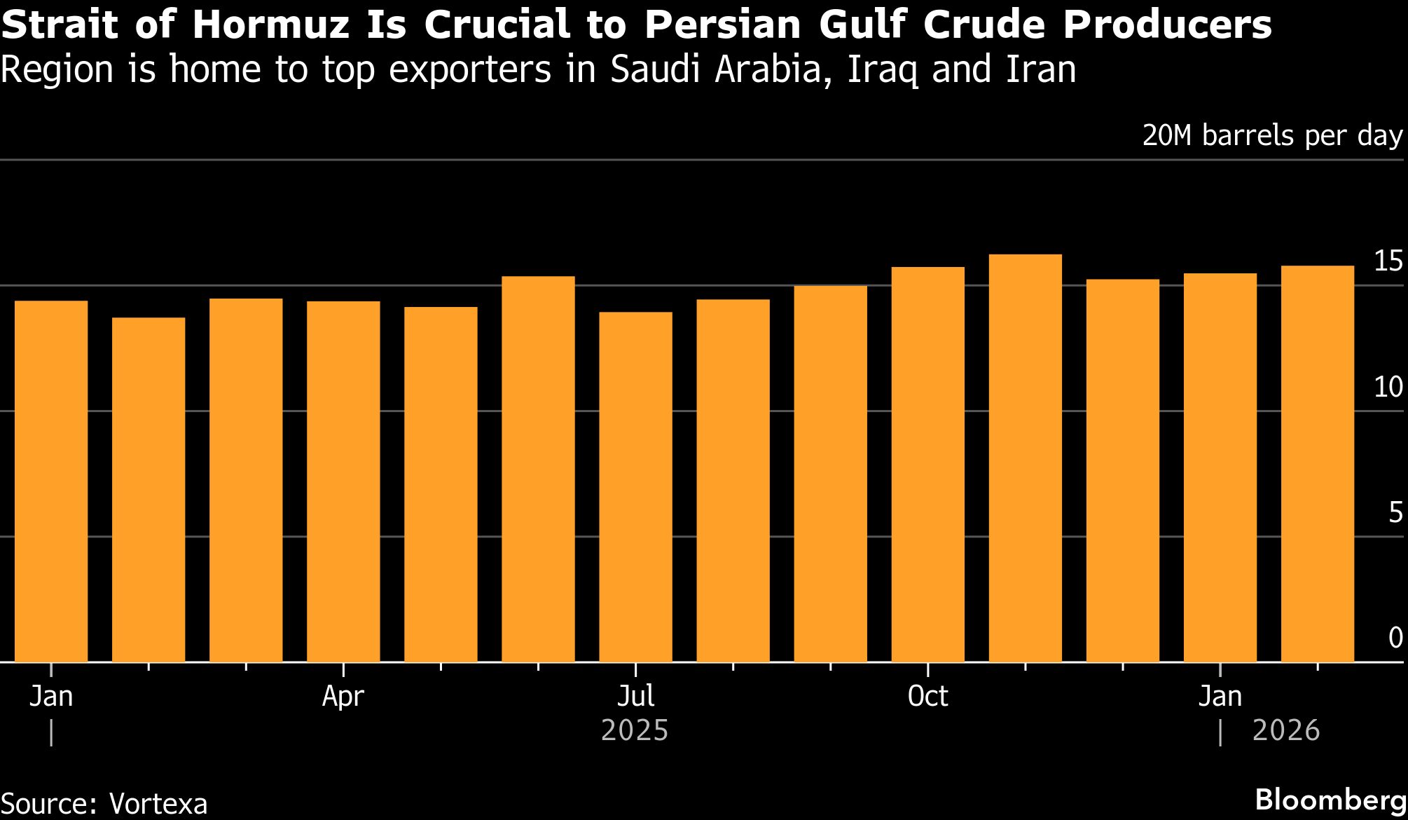 Biasanya, hampir 15 juta barel minyak mentah dimuat setiap hari di Teluk ke kapal-kapal dengan berbagai ukuran untuk diekspor melalui selat tersebut.