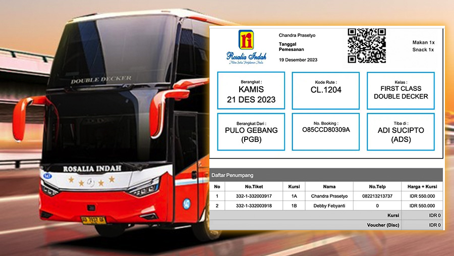 Rosalia Indah menawarkan rute favorit Jakarta Yogyakarta mulai Rp260.000. Jakarta Banjarnegara dipatok mulai Rp190.000 dan Jakarta Banyumas mulai Rp200.000.