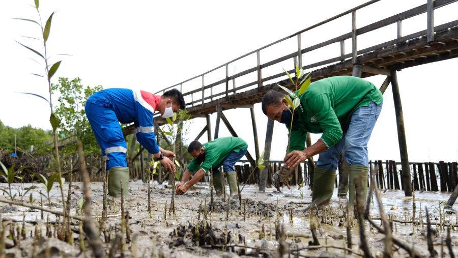 Selain itu, perusahaan juga menanam pohon berbatang keras seperti meranti, trembesi, cendana, dan akasia. Tak ketinggalan, pohon mangrove ditanam sebagai pelindung pesisir untuk mencegah abrasi serta menyerap karbon.