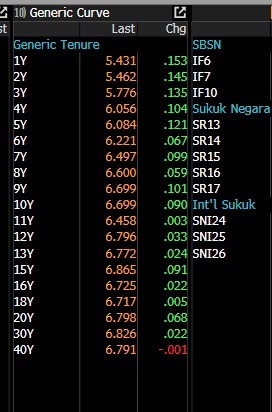 Begitu juga tenor jangka menengah seperti 6Y hingga 10Y yang menjadi benchmark investor telah mengalami kenaikan 9,9 bps hingga 10 bps dan berada di rentang 6,2% hingga 6,69%.