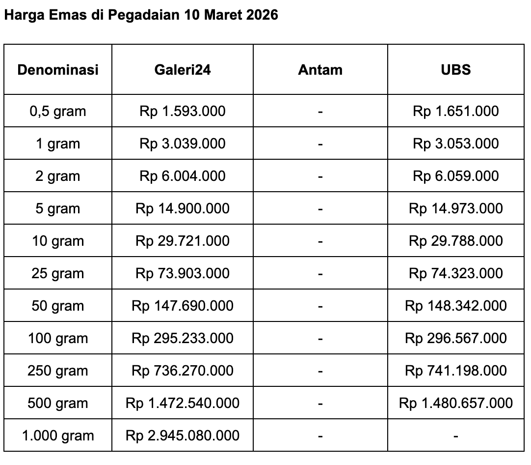 Pegadaian adalah salah satu anak usaha PT Bank Rakyat Indonesia (Persero) Tbk (BBRI). Berikut perkembangan harga emas di Pegadaian selengkapnya, seperti dilansir situs Sahabat Pegadaian:
