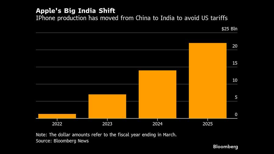Tarif yang diberlakukan Presiden Donald Trump tersebut mendorong Apple dan pemasoknya untuk memindahkan sebagian besar perangkat yang ditujukan untuk pasar Amerika ke lokasi manufaktur alternatif, dengan India muncul sebagai titik terang utama.