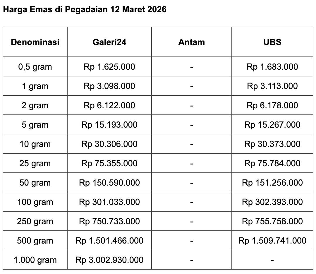 Pegadaian adalah salah satu anak usaha PT Bank Rakyat Indonesia (Persero) Tbk (BBRI). Berikut perkembangan harga emas di Pegadaian selengkapnya, seperti dilansir situs Sahabat Pegadaian: