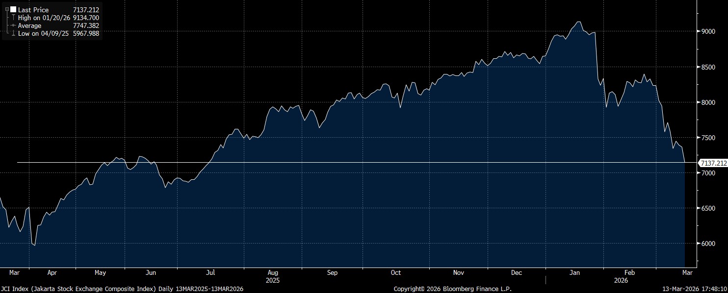 Kelanjutan ketegangan Timur Tengah membuat investor menghindari aset–aset berisiko seperti saham. Perang yang melibatkan Amerika Serikat (AS) dan Israel versus Iran masih terus berlangsung, hingga meluas dan menyeret kecemasan pasar global.