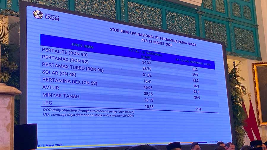 Sebelumnya, stok operasional BBM, avtur, hingga LPG milik PT Pertamina (Persero) per 9 Maret 2026 dalam kondisi terjaga atau di atas standar kecukupan nasional.