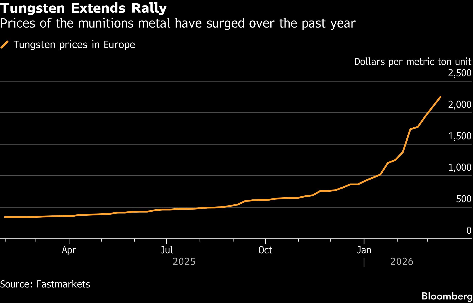 Kenaikan harga tungsten makin cepat dalam beberapa pekan terakhir karena pembeli menghabiskan stok dan konflik di Timur Tengah mempertajam fokus pada permintaan militer.