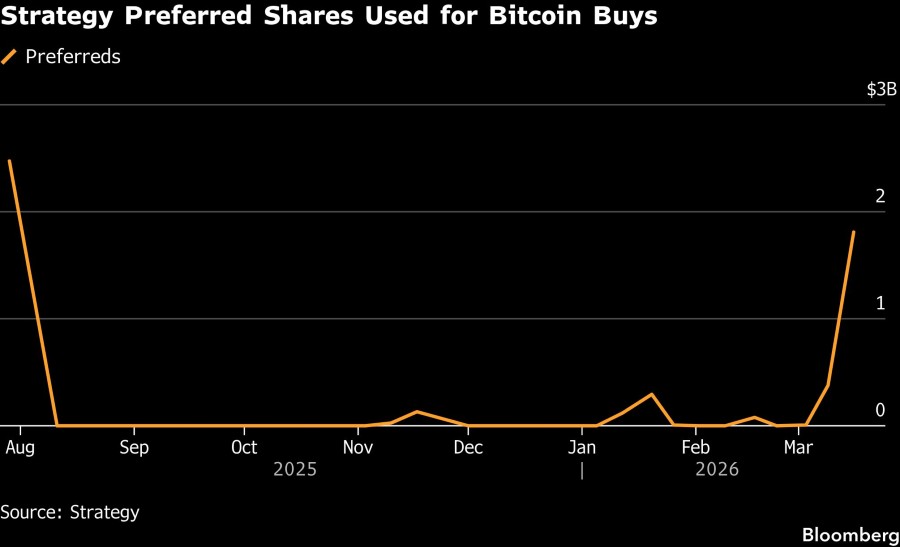 Perusahaan yang sebelumnya dikenal sebagai MicroStrategy ini membeli 22.337 Bitcoin antara tanggal 9 Maret dan 15 Maret, menurut laporan regulasi pada hari Senin. Sekitar US$400 juta dari pembelian tersebut didanai melalui penjualan saham biasa. Sisanya sebesar US$1,2 miliar berasal dari penjualan “Stretch” perpetual preferred shares di pasar. Sekuritas yang membayar dividen ini — mirip dengan obligasi yang tidak mengenal jatuh tempo — menjanjikan investor imbal hasil tetap yang didanai secara langsung oleh kepemilikan Bitcoin Strategy.
