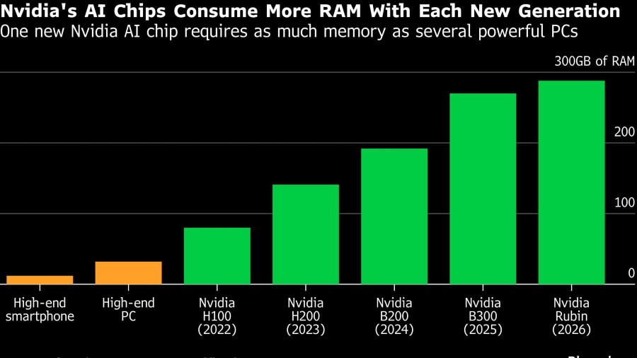 SK Hynix, Samsung Electronics Co., dan Micron Technology Inc. mendominasi pasokan chip memori secara global. Ketiga perusahaan tersebut telah mengalihkan produksi dalam beberapa tahun terakhir ke bentuk memori khusus yang ditujukan untuk digunakan dalam akselerator AI Nvidia yang banyak diminati, yang menyebabkan kekurangan produksi penyimpanan yang lebih konvensional.