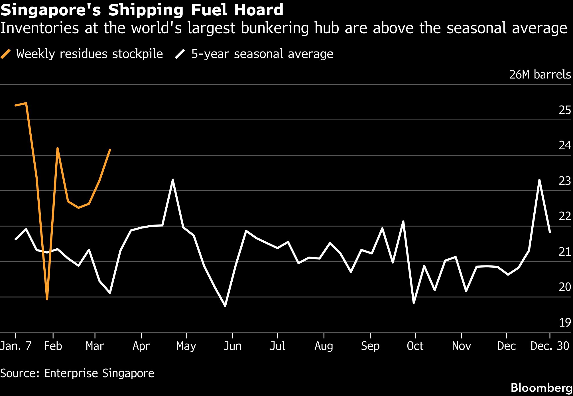 Bloomberg, Konflik yang meluas di Timur Tengah telah menyebabkan fluktuasi dan lonjakan harga bahan bakar kapal yang dramatis, sehingga mendorong distributor di Singapura—pusat pengisian bahan bakar kapal terbesar di dunia — untuk mengurangi pembelian mereka.