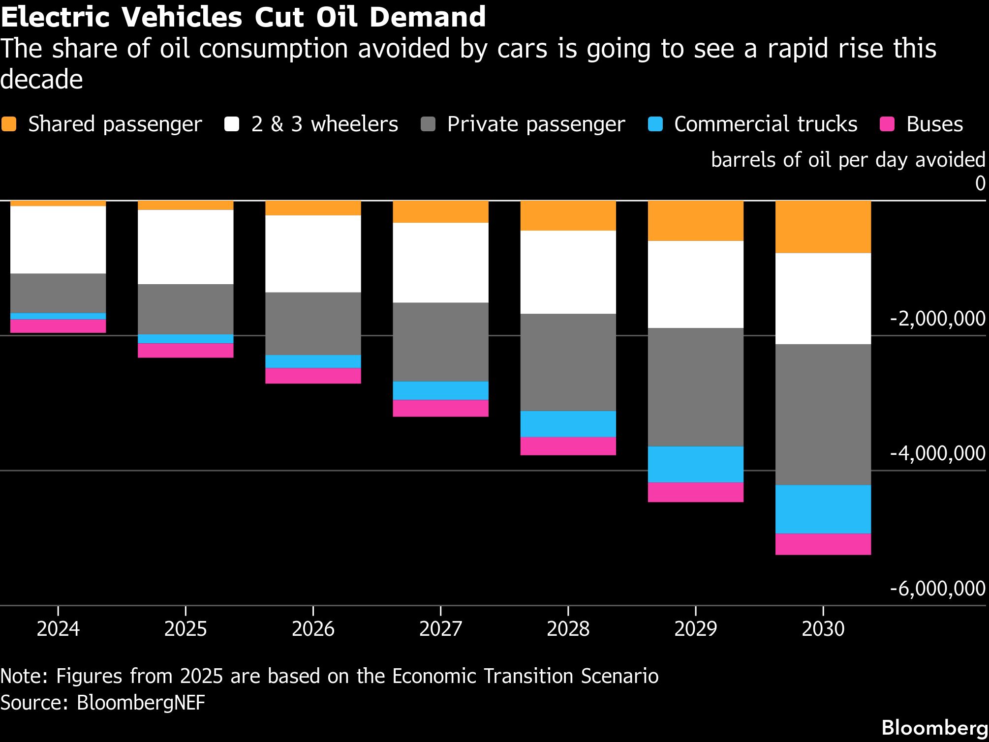 Seiring dengan makin umumnya mobil listrik, diperkirakan mengurangi lebih banyak permintaan minyak pada akhir dekade ini.