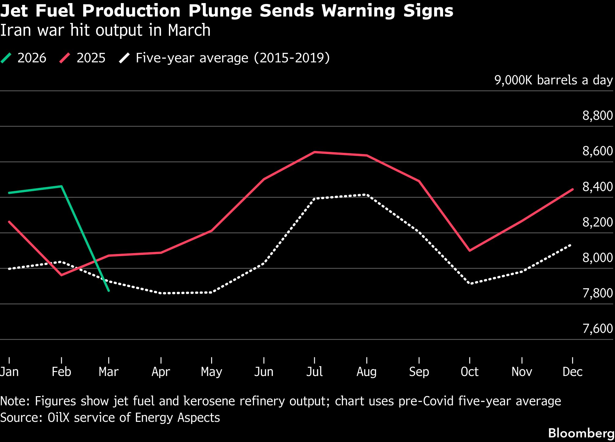 Secara keseluruhan, sekitar 37 juta barel bahan bakar jet dan minyak tanah akan hilang bulan ini dan bulan depan jika Hormuz tidak dibuka kembali, menurut perkiraan Eugene Lindell, kepala produk olahan di perusahaan konsultan FGE NexantECA.