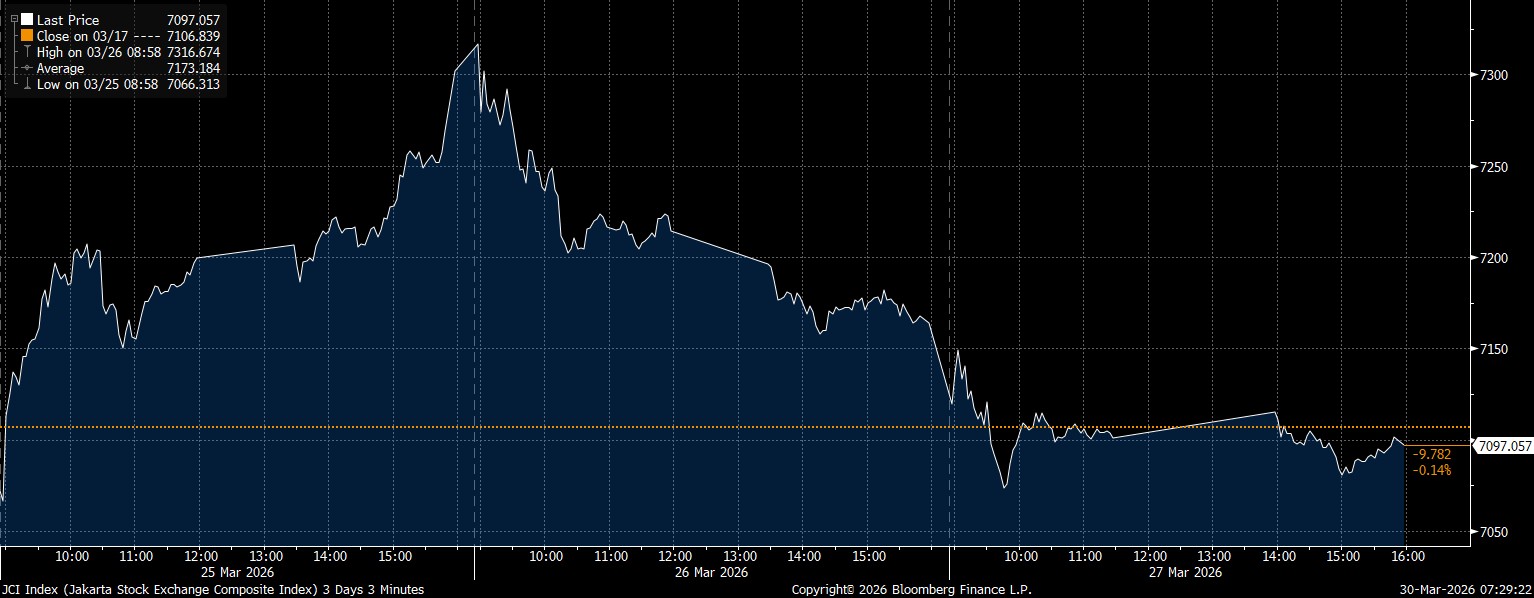 Bloomberg Technoz, Jakarta - Indeks Harga Saham Gabungan (IHSG) ditutup di zona merah pada perdagangan pekan pendek hingga Jumat (27/3/2026). IHSG melemah 0,14% di posisi 7.097,05. Lantas bagaimana dengan rekomendasi saham hari ini?