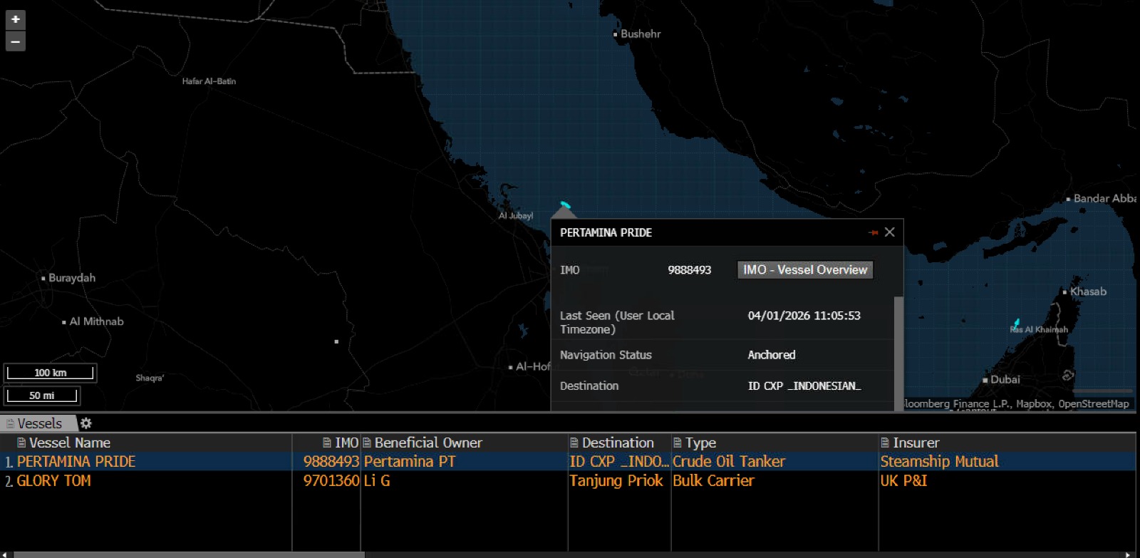 Di sisi lain, terdapat satu tanker PIS yang masih belum dapat melewati Selat Hormuz, yakni Gamsunoro.