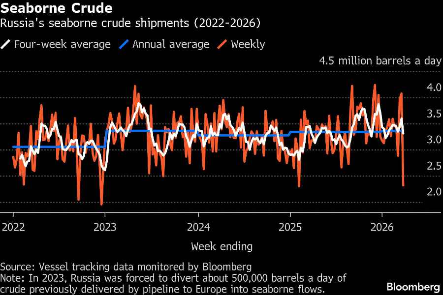 Penurunan ini dipicu oleh serangkaian serangan drone Ukraina di Primorsk dan Ust-Luga yang menghentikan pengiriman selama sebagian besar pekan tersebut. Ekspor gabungan dari kedua pelabuhan tersebut merupakan yang terendah dalam data yang tersedia sejak awal 2022.