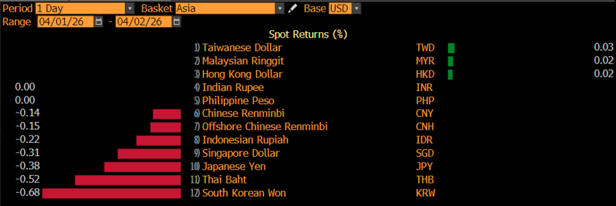 Pergerakan rupiah sejalan dengan mata uang kawasan yang mayoritas melemah. Hanya ringgit Malaysia dan dolar Hong Kong yang masih terapresiasi terbatas sebesar 0,03% dan 0,02%.