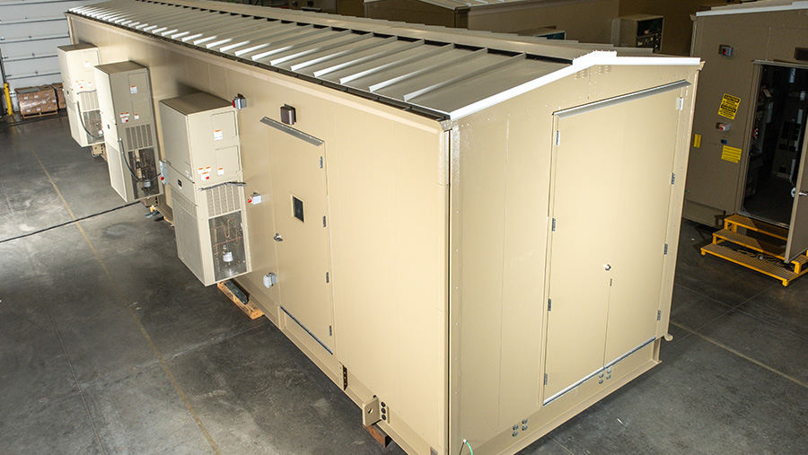 Untuk mempercepat proses pemasangan, Crusoe mulai mengemas peralatan pengatur daya tersebut dalam apa yang disebutnya sebagai pusat distribusi daya (PDC). Berbagai PDC tersebut tampak seperti kontainer pengiriman yang bisa dihuni – mereka memiliki atap miring, talang air, dan pintu, meskipun tanpa jendela.