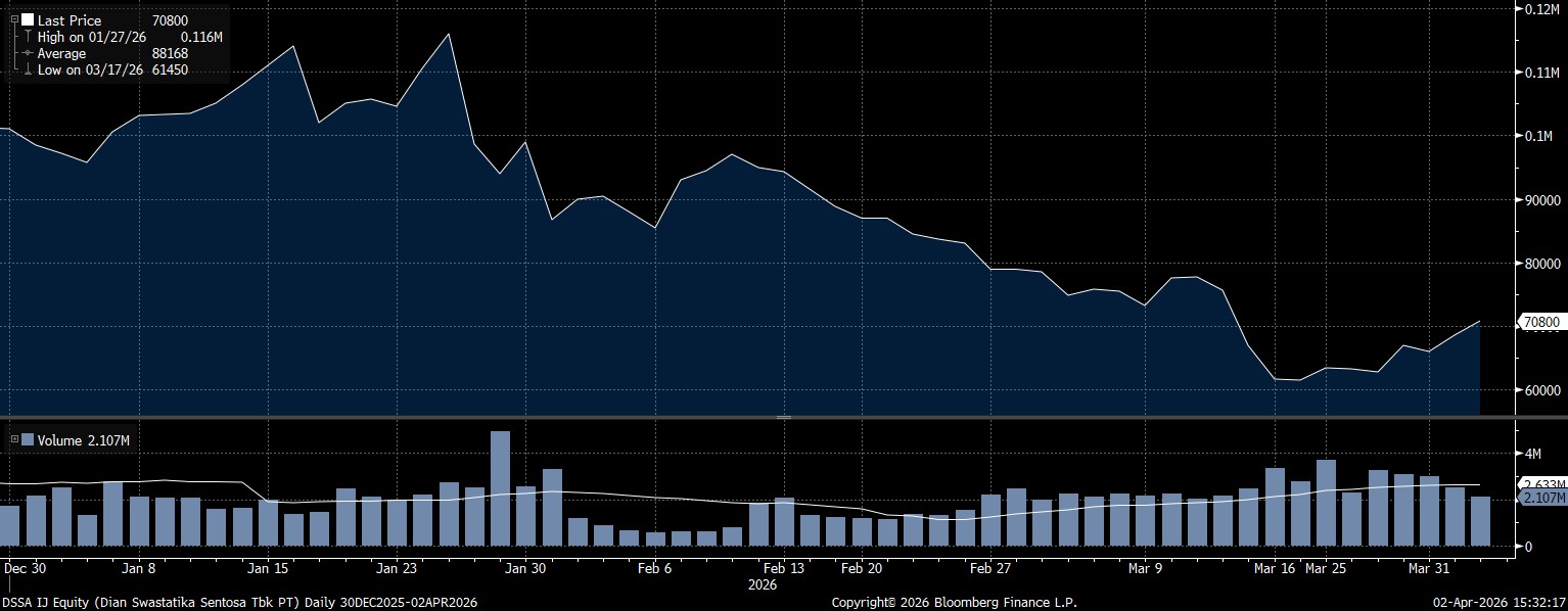 Adapun, UOB Kay Hian Private Limited menggenggam saham DSSA mencapai 3,74% sampai periode akhir bulan lalu.