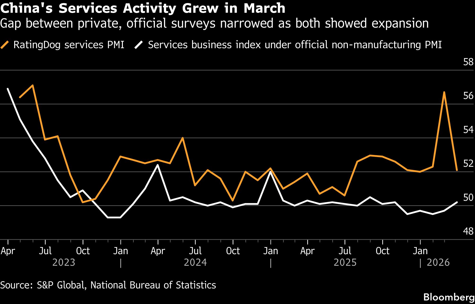 Bloomberg, Aktivitas sektor jasa China dilaporkan tumbuh dengan laju yang lebih lambat pada bulan Maret. Berdasarkan survei swasta terbaru, tren ini mengindikasikan lemahnya permintaan konsumen setelah sempat melonjak akibat libur panjang nasional pada bulan sebelumnya.