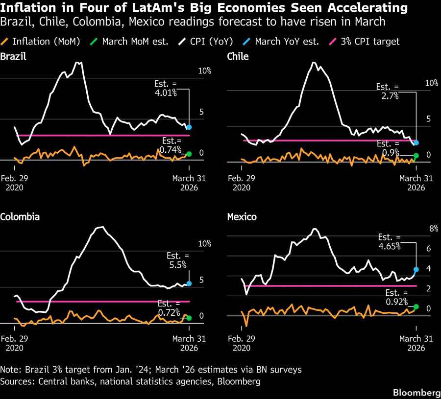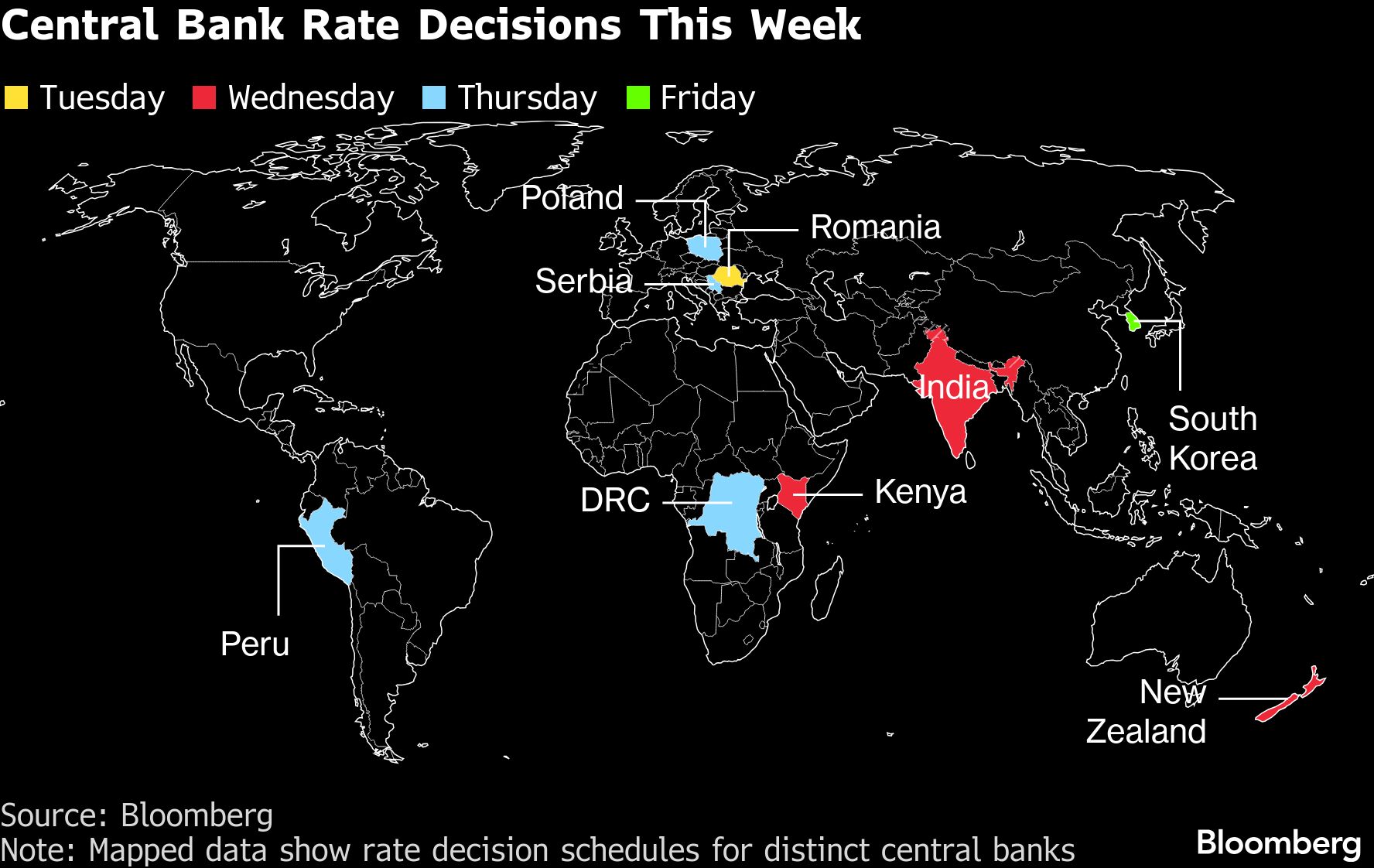Di tempat lain, bank sentral dari Poland hingga India dan New Zealand kemungkinan akan mempertahankan kebijakan mereka sambil memantau perkembangan di Timur Tengah, sementara indikator inflasi dari China hingga Amerika Latin akan menunjukkan dampaknya terhadap biaya hidup.