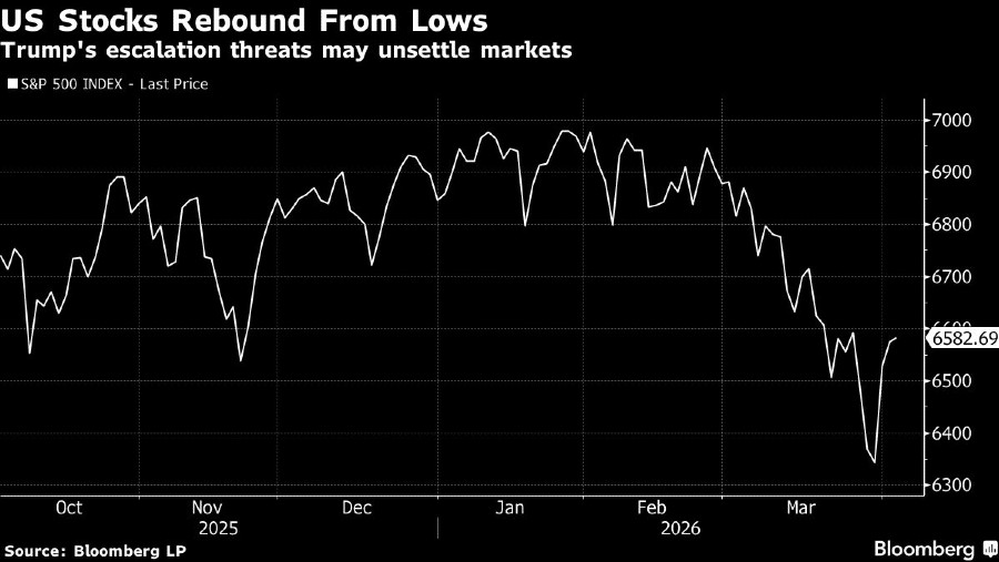 Indeks S&P 500 baru saja mencatatkan kenaikan mingguan terbaik tahun ini, yaitu lonjakan 3,4% yang didorong oleh aksi short covering dan spekulasi awal pekan bahwa Trump siap untuk mulai mengakhiri operasi militer AS. Kenaikan tersebut membuat indeks hanya 5,7% di bawah rekor Januari.