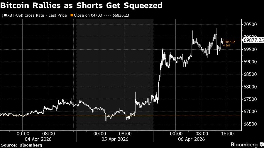Bloomberg, Bitcoin kembali mencatatkan kenaikan harga pada Selasa dini hari, 7 April 2026, ke level US$70.000. Menjadi yang pertama kalinya sejak Maret, seiring para pedagang tergesa-gesa melepas posisi bearish meskipun belum ada kejelasan mengenai negosiasi gencatan senjata di Timur Tengah.