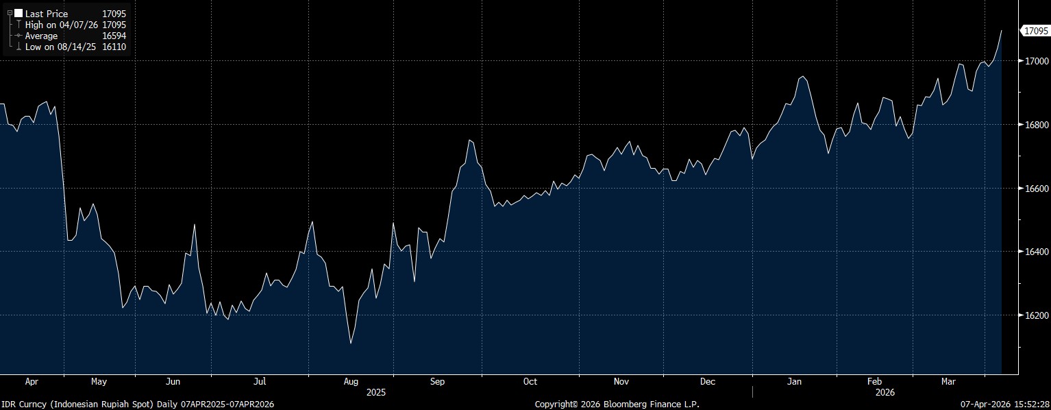 Pelemahan rupiah utamanya tersengat tensi geopolitik Timur Tengah yang kembali mengencangkan sentimen risk–off. Presiden AS Donald Trump melontarkan ancaman keras untuk menghancurkan infrastruktur utama Iran jika tuntutannya tidak dipenuhi sebelum tenggat Selasa setempat.