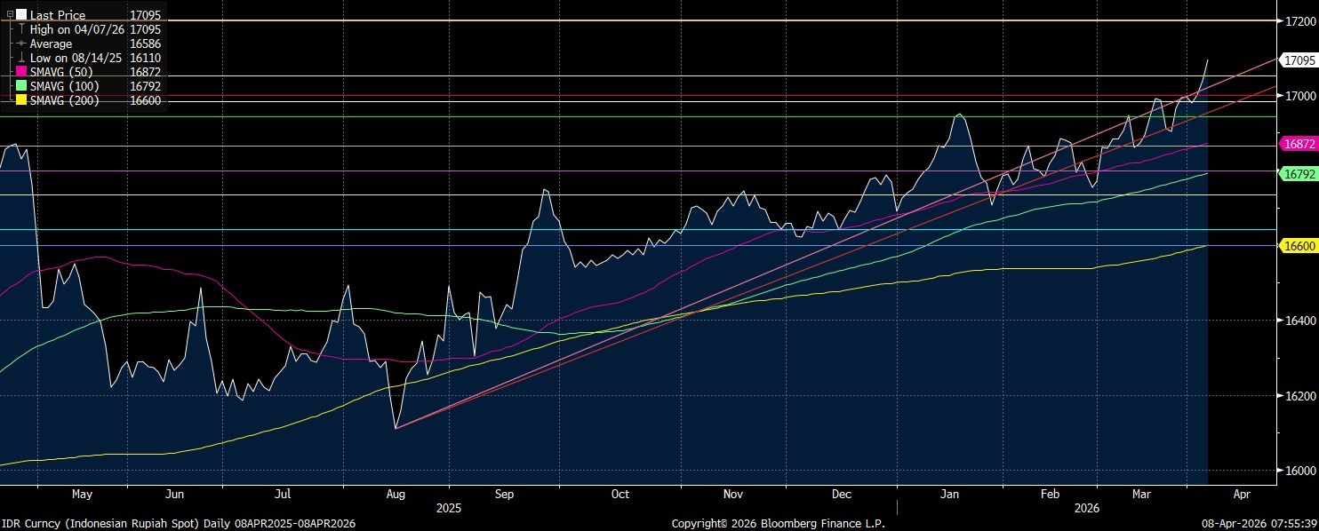 Secara teknikal, rupiah berpotensi rebound meski dengan laju penguatan yang amat terbatas. Target resistance terdekat menuju level Rp17.060/US$, yang selanjutnya ke Rp17.020/US$.