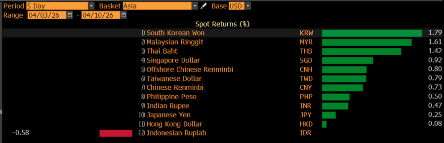 Lebih lanjut, sepanjang pekan ini rupiah menjadi satu-satunya mata uang yang melemah kala mata uang Asia berpesta dan menyambut jeda perang sebagai sentimen positif. Berbeda dengan mata uang kawasan, rupiah sepekan melemah 0,58% kala semua mata uang Asia berbalik arah dan menguat.