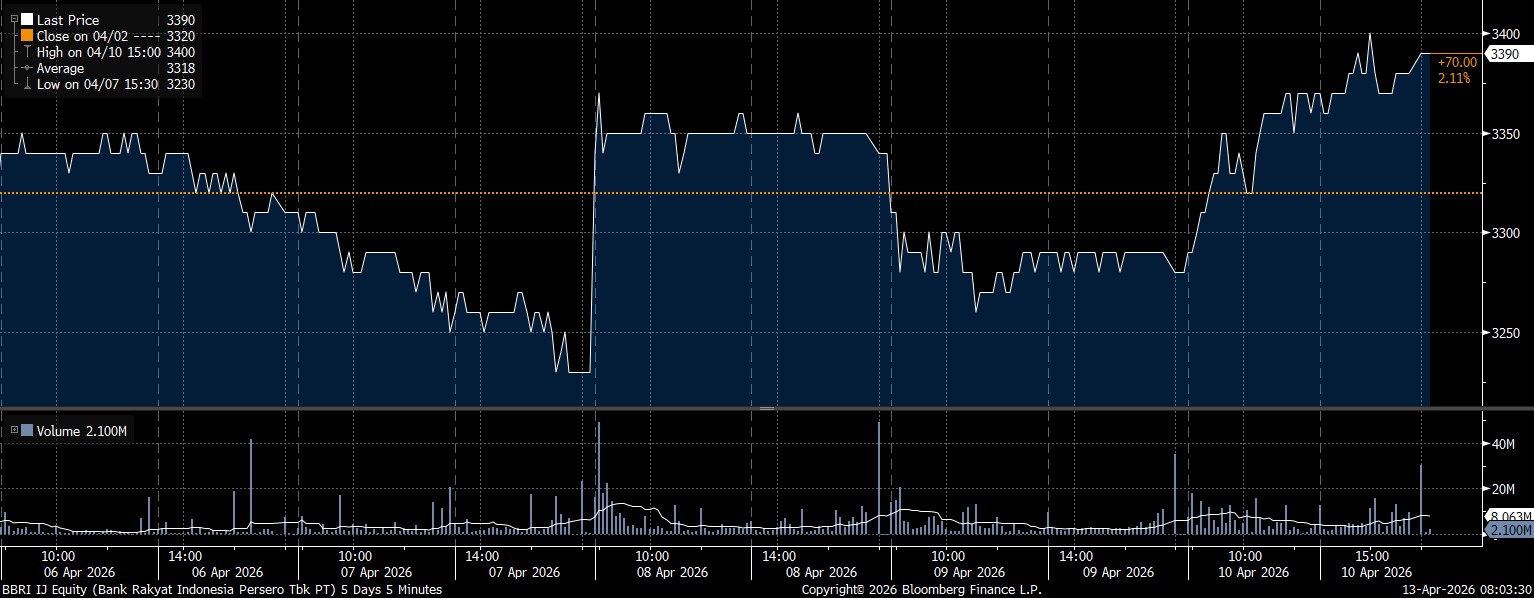 Adapun investor asing mencatat net sell terbesar pada saham PT Bank Rakyat Indonesia Tbk (BBRI) mencapai Rp1,42 triliun. Kontra dengan tekanan jual, saham BBRI menguat 2,11% menyentuh posisi Rp3.390/saham.